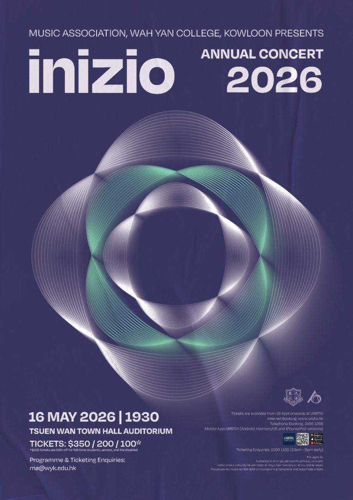 The WYK Annual Concert 2026 will be held on 16 May 2026 (Saturday) at 7:30 p.m. at the Tsuen Wan Town Hall Auditorium. Please find the ticket ordering and sponsorship form as follows: